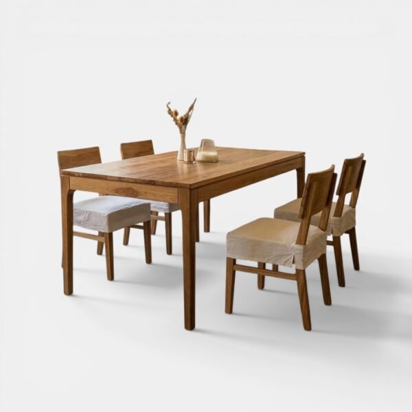 Juego de Comedor de Madera Paraíso – Mesa con Sillas y Banco Tapizado