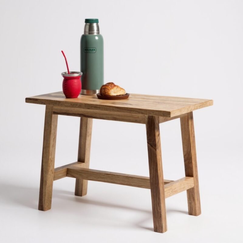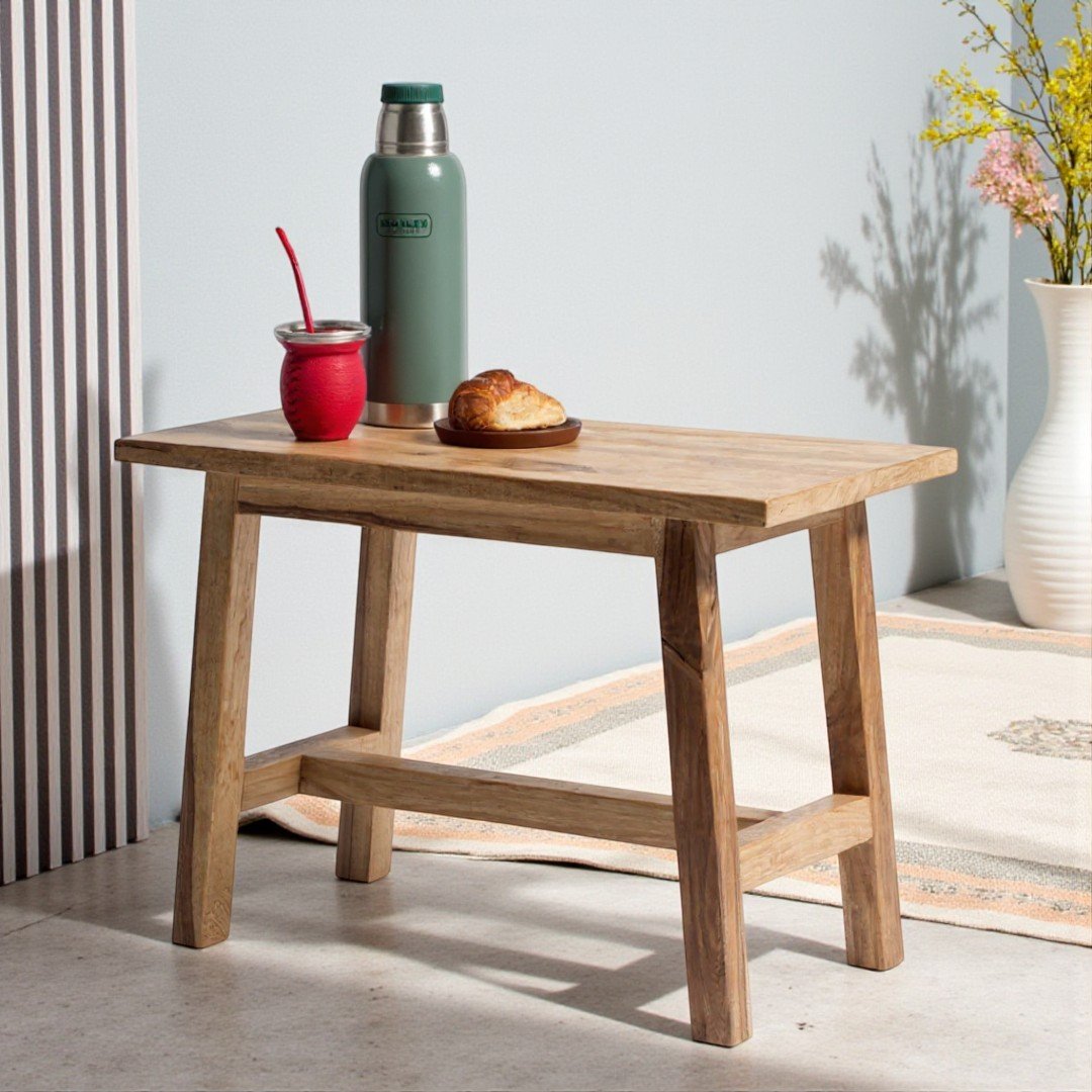 Banco de diseño firme y elegante, fabricado en madera maciza de Petiribí. Perfecto para combinar con mesas o como asiento independiente en espacios residenciales o comerciales.