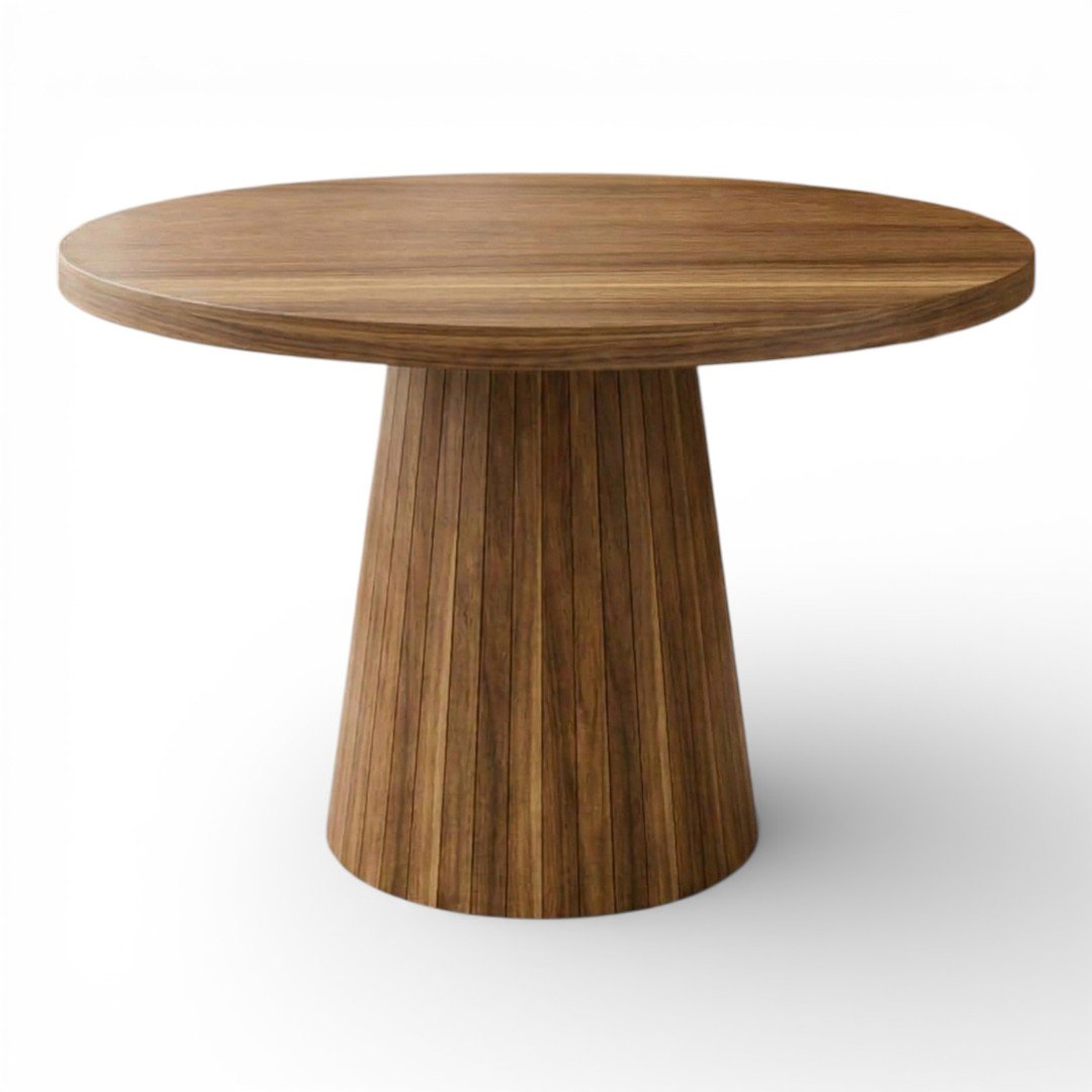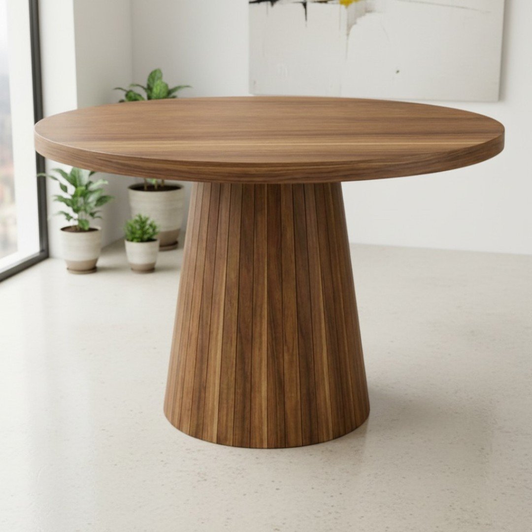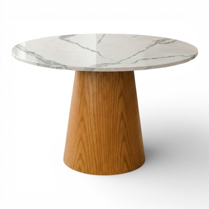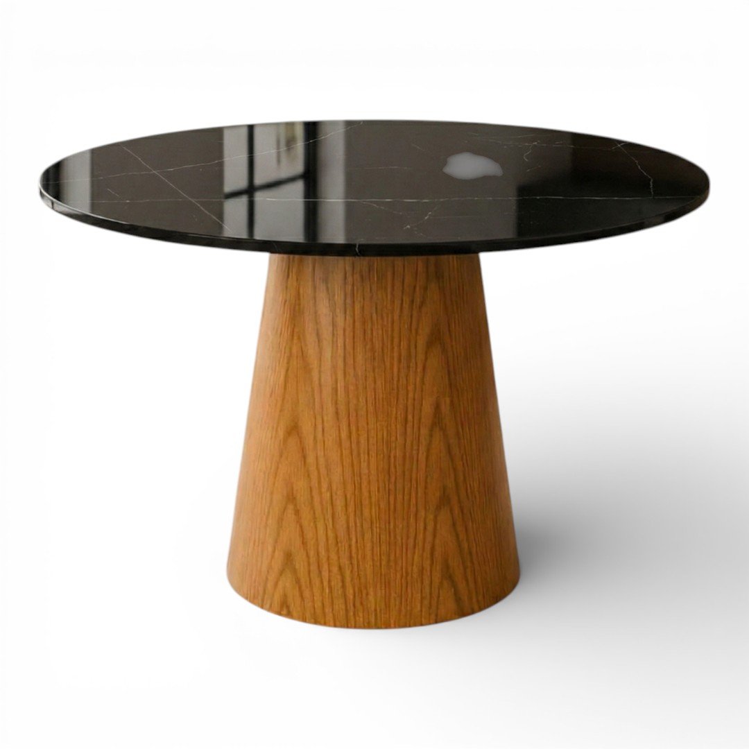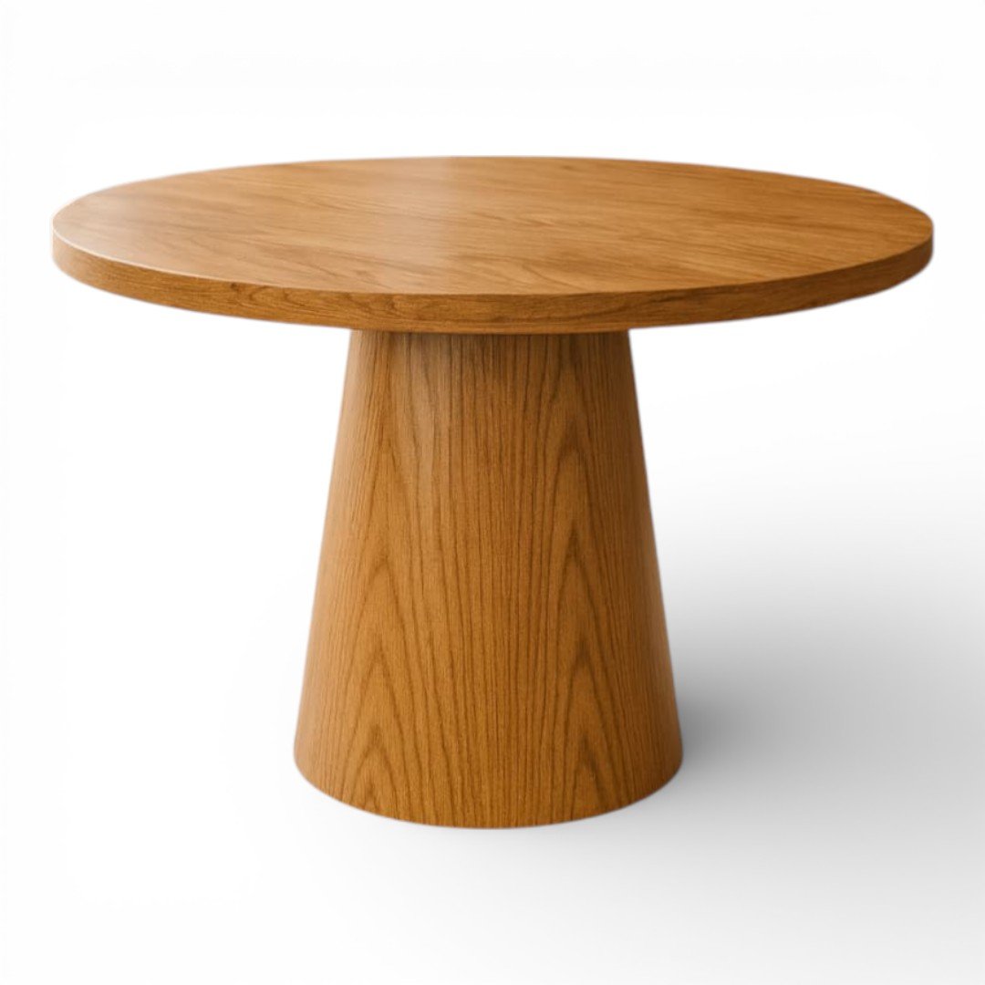 La Mesa de Comedor Cónica es una pieza de diseño que combina la calidez de la madera noble con la sofisticación de los materiales de última generación. Su base central de forma cónica no solo ofrece un soporte visualmente impactante y minimalista, sino que optimiza el espacio de las piernas, permitiendo mayor comodidad para todos tus invitados.