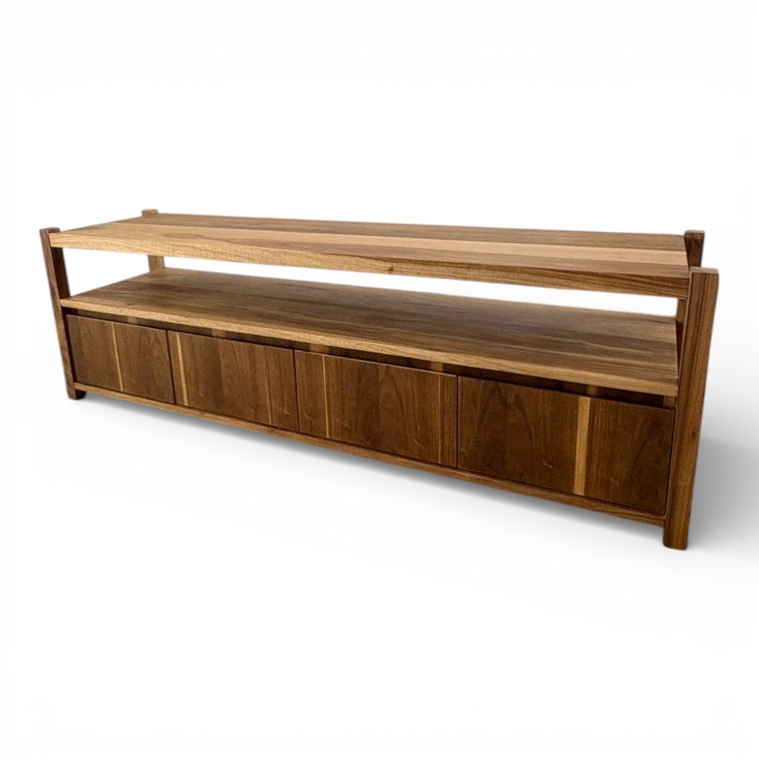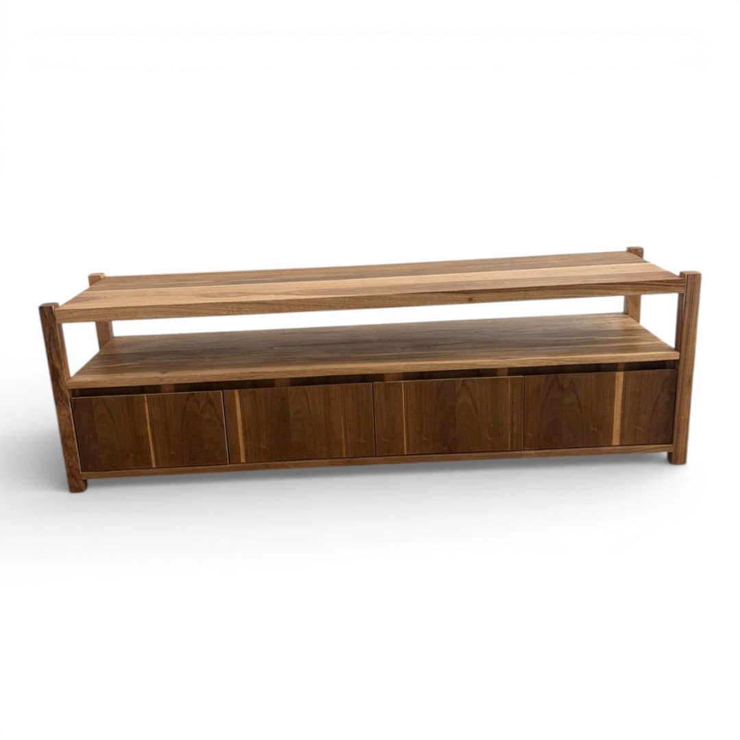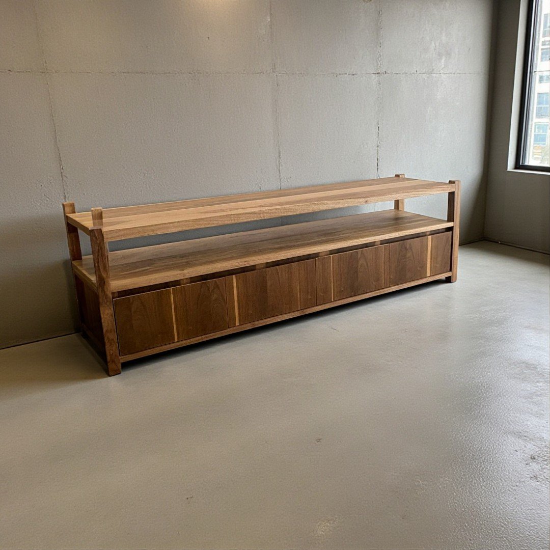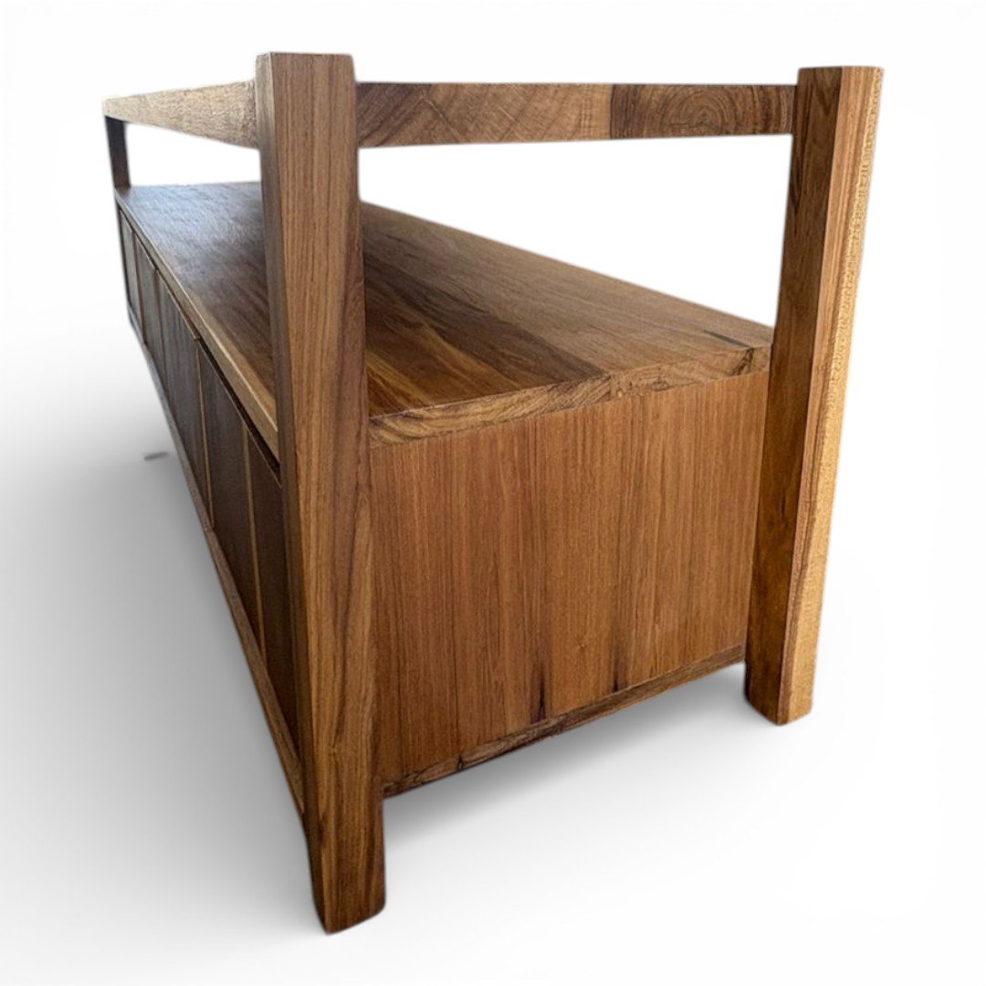 El Rack de TV Gala es la pieza que redefine tu espacio de entretenimiento. Fabricado en madera maciza de Petiribí, este mueble combina un estante superior abierto, ideal para dispositivos o decoración, con un amplio espacio de guardado inferior de frentes limpios que resaltan la continuidad de la veta natural. Su estructura robusta y detalles de ensamble a la vista lo convierten en un mueble de diseño superior. Esta pieza se puede fabricar en la medida que necesites y la cantidad de cajones que necesites.
