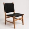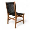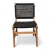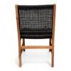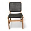 Silla de madera teca con asiento de soga negra, resistente y elegante.
