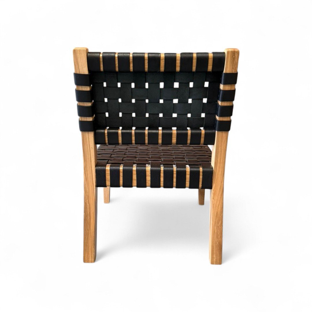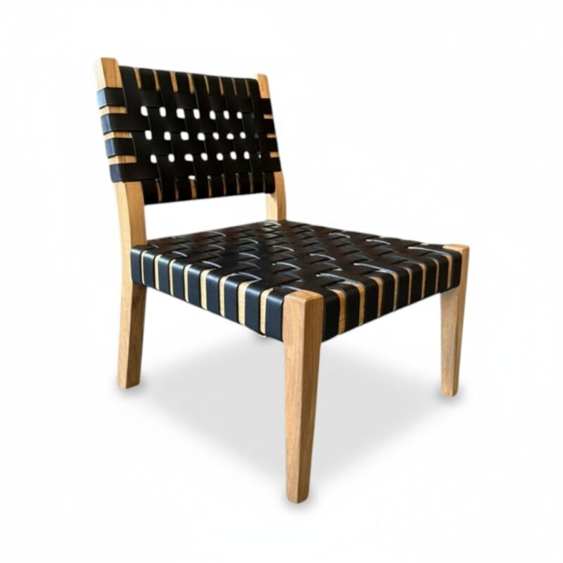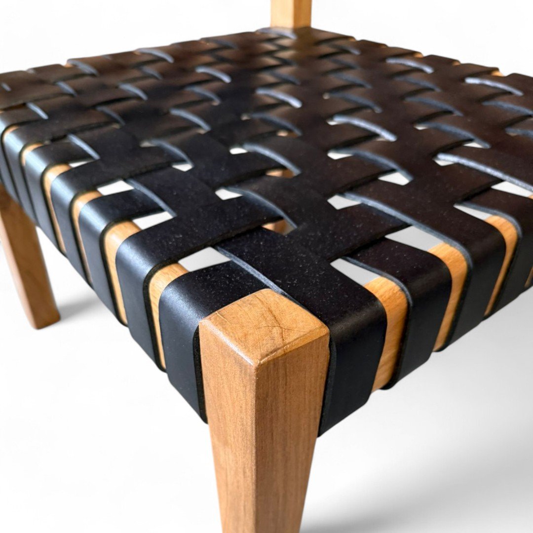Sillon  matero en madera petiribi con asiento y respaldo tejido en cuero fusiona un diseño minimalista y elegante con materiales de alta calidad. Su estructura de madera petiribi garantiza durabilidad y resistencia, mientras que el cuero en el asiento y respaldo añade confort y sofisticación. Perfecto para quienes buscan un mueble que combine estilo nórdico con funcionalidad,  es ideal para espacios modernos que buscan un toque de distinción.